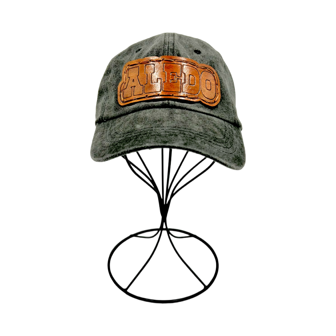 Aledo Leather Patch Hat- Washed Black Dad Cap