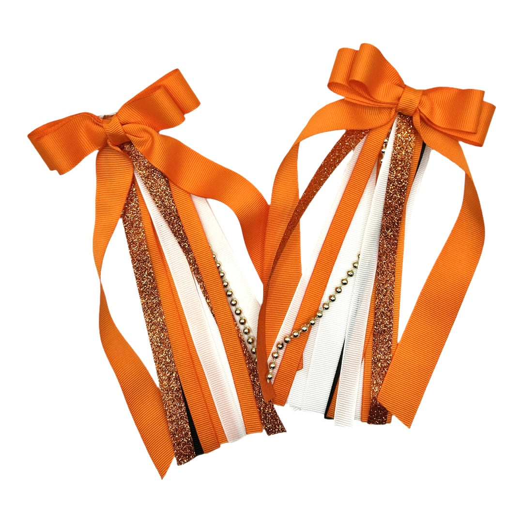 Elevate your game day look with adorable boot bows! Designed to add a touch of flair to your favorite pair of boots, these clip on boot bows are perfect for showcasing your school spirit or favorite colors with style. Made from high-quality materials, these bows for boots are durable and easy to attach, allowing you to effortlessly customize your footwear. Whether you're heading to a game, the rodeo, or just strolling around, these unique boot bows will surely make you stand out from the crowd and turn heads wherever you go!  Available in five sizes to fit even the smallest cowgirl.